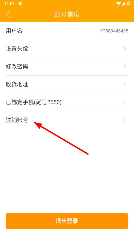 4、在賬號信息頁面里,點擊注銷賬號選項,進入注銷賬號提示頁面。