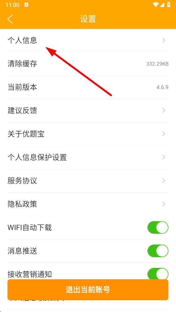 3、在設(shè)置界面中,點擊個人信息選項,進入賬號信息頁面。