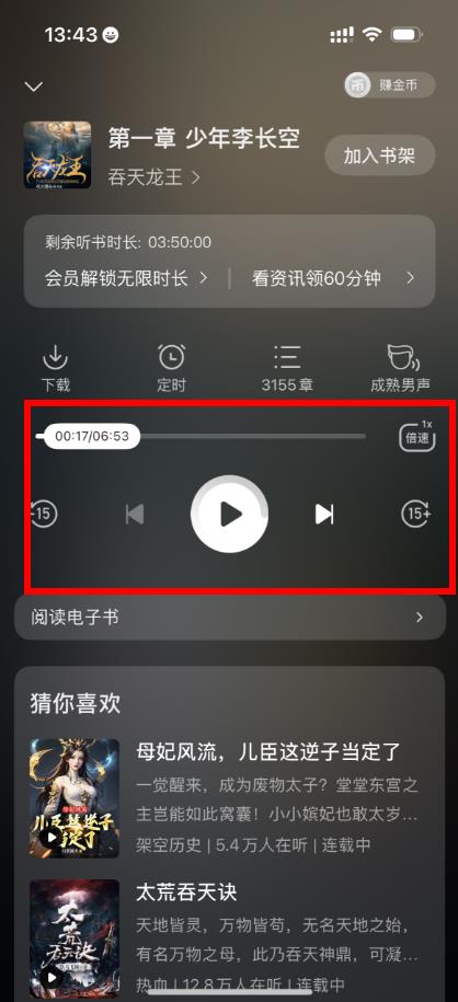 2、在書籍詳情頁面,點擊立即收聽按鈕,進入聽書界面。