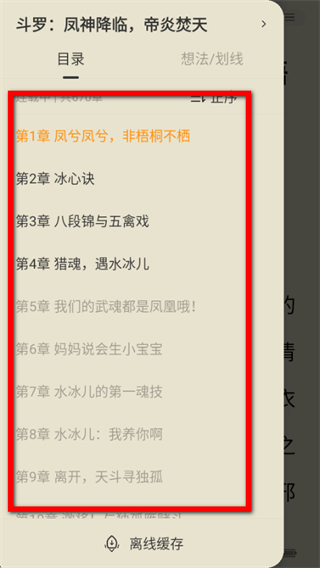 4、在展開的目錄列表中,即可查看小說的章節(jié)目錄。