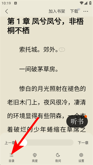 3、在小說閱讀界面,點擊左下角目錄選項,展開目錄列表。