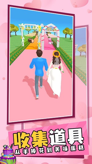 將籌備婚禮作為主要題材,在看似簡單的跑酷玩法中融入了諸多籌備的元素,游戲的每一個關卡都是在進行著不同的內容籌備,或是選擇婚紗、或是挑選DJ、就連美味可口的食物也需要玩家親手收集而成。