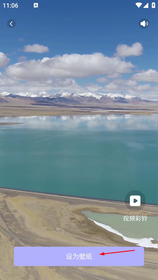 3、在壁紙詳情頁面,找到標有“設(shè)為壁紙”的紫色按鈕,點擊該按鈕,按照軟件提示完成后續(xù)操作,即可將這張風景壁紙設(shè)置為手機壁紙。