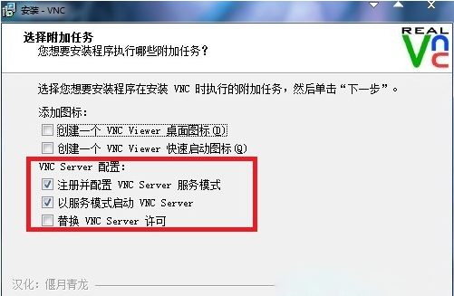 雙擊“vnc-E4_2_9-x86_win32_CHS.exe”進行安裝,同樣一直下一步,直到下圖兩項需要勾選
