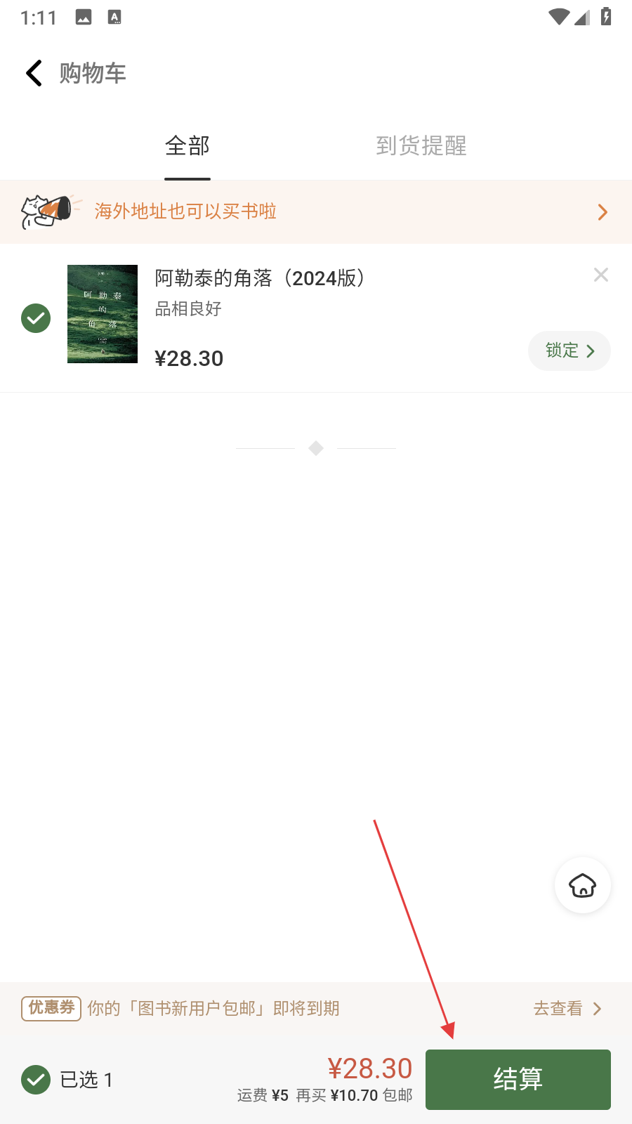 4、看到已加入的商品,確認商品無誤后,點擊右下角結(jié)算按鈕。