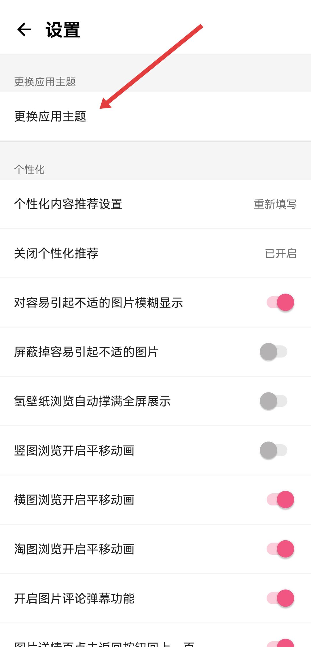 2、在設(shè)置的頁面中,點擊更換應(yīng)用主題的選項,進(jìn)入主題設(shè)置的界面。