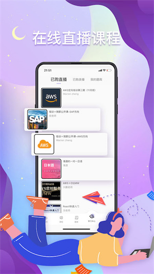 - 直播課程在線觀看,每天都有超多直播課程可以學(xué)習(xí),錯過直播也能觀看對應(yīng)的錄播課程;