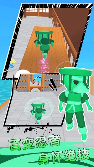 在游戲中,你將操縱忍者進行闖關,在關卡中,你需要合理運用技能,進行躲避,攻擊,快速達到終點。
