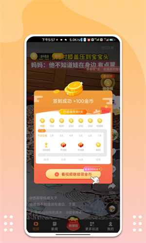 3、【驚喜獎勵】看視頻得金幣,金幣可提現(xiàn)。