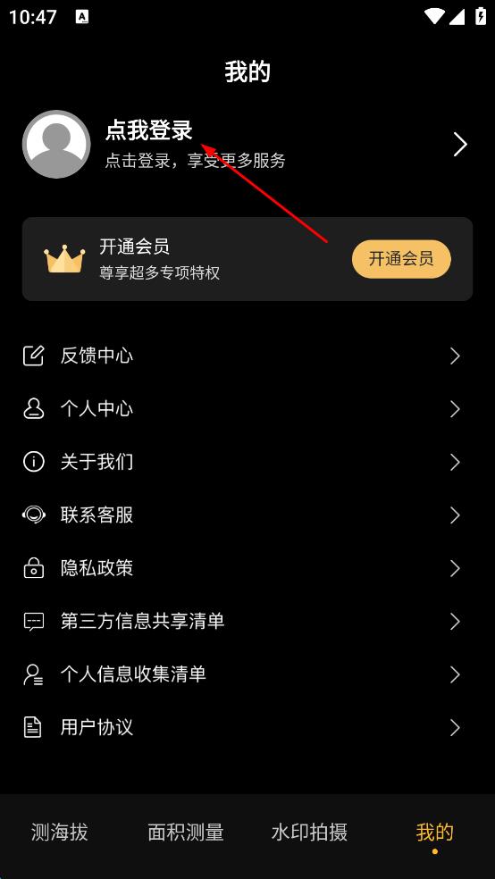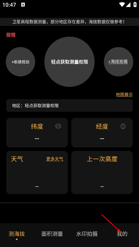 1、打開海拔測(cè)量?jī)x軟件,點(diǎn)擊右下角我的,進(jìn)入我的頁面。
