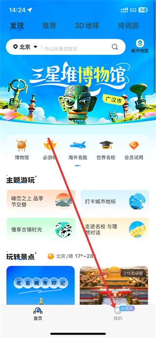 1、打開旅途隨身聽app,點(diǎn)擊底部導(dǎo)航欄我的。