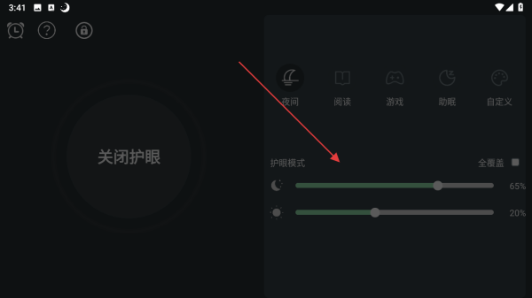 夜間護眼APP是熬夜族的最愛,熬夜熄燈還想玩手機,就開夜間模式,輕松閱讀、看視頻、玩游戲,不再怕刺眼,在影院看電影不再擔(dān)心手機太亮影響他人,學(xué)生黨輕松被窩玩手機不再發(fā)現(xiàn),同時省電防藍光,一鍵開啟最舒適??梢酝ㄟ^降低屏幕藍光來保護你的眼睛,減傷屏幕藍光對你的健康影響,可以在系統(tǒng)亮度的基礎(chǔ)上降低屏幕亮度,在夜晚的時候避免高背光傷眼和護眼。app可以根據(jù)您的喜好自定義顏色,還有定時開啟和關(guān)閉護眼的功能。