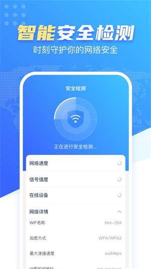 用戶可以輕松的保護(hù)自己的手機(jī)安全,有任何的病毒是可以及時(shí)的進(jìn)行查殺的,而且還可以增加手機(jī)WiFi的運(yùn)行速度,為用戶提供了非常多的服務(wù),也可以輕松的分享自己的手機(jī)WiFi,讓自己的朋友也可以直接進(jìn)行連接,提供的方便服務(wù)也非常多。