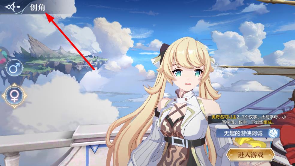 2、進(jìn)入創(chuàng)角界面,選擇角色性別,輸入由2-7個(gè)漢字、大小寫字母等組成的奧奇名,完成角色創(chuàng)建設(shè)置。