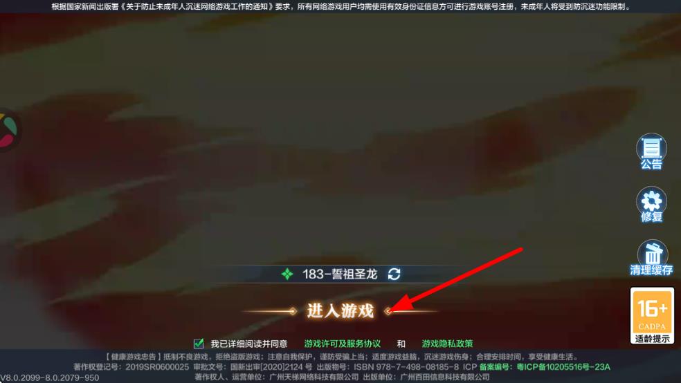 1、打開奧奇?zhèn)髡f游戲,在初始界面閱讀并勾選同意游戲許可及服務(wù)協(xié)議、游戲隱私政策,點(diǎn)擊進(jìn)入游戲按鈕。