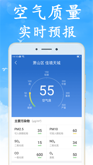 5、【空氣質(zhì)量實時監(jiān)控】實時監(jiān)控空氣質(zhì)量,關(guān)愛健康全面護(hù)航。