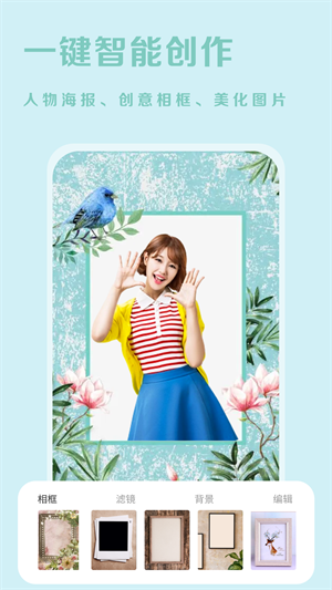 - 一鍵智能制作創(chuàng)作,輕松制作獲得各種人物海報、創(chuàng)意相框、美化圖片等資源,讓大家更好的選擇使用。
