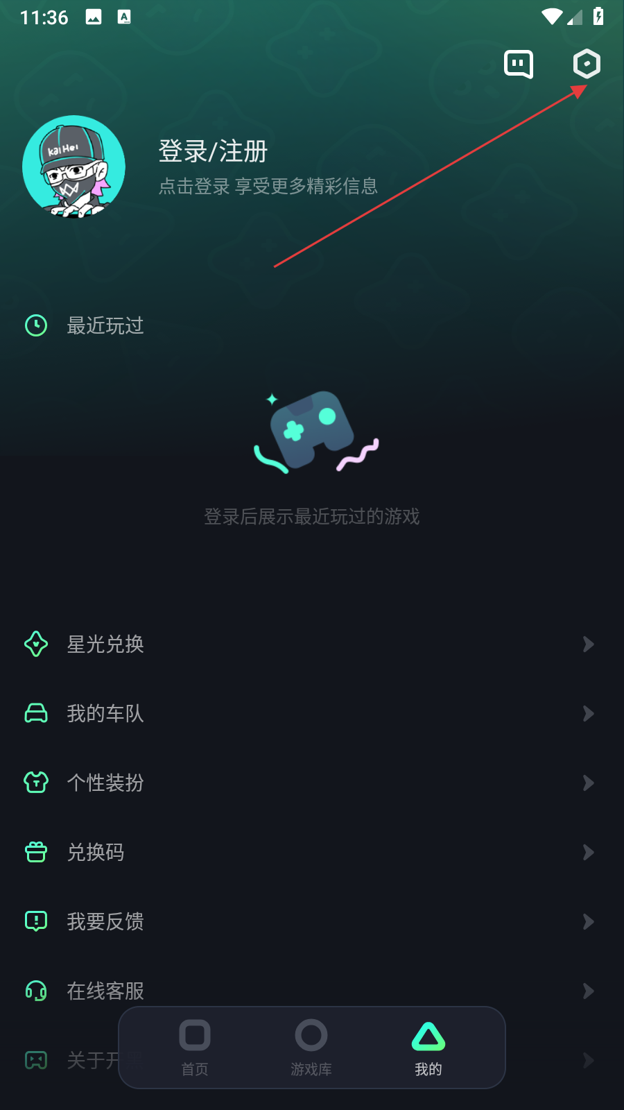 1、打開(kāi)開(kāi)黑云電腦應(yīng)用,進(jìn)入我的頁(yè)面,點(diǎn)擊右上角齒輪形狀的設(shè)置圖標(biāo),進(jìn)入設(shè)置頁(yè)面。