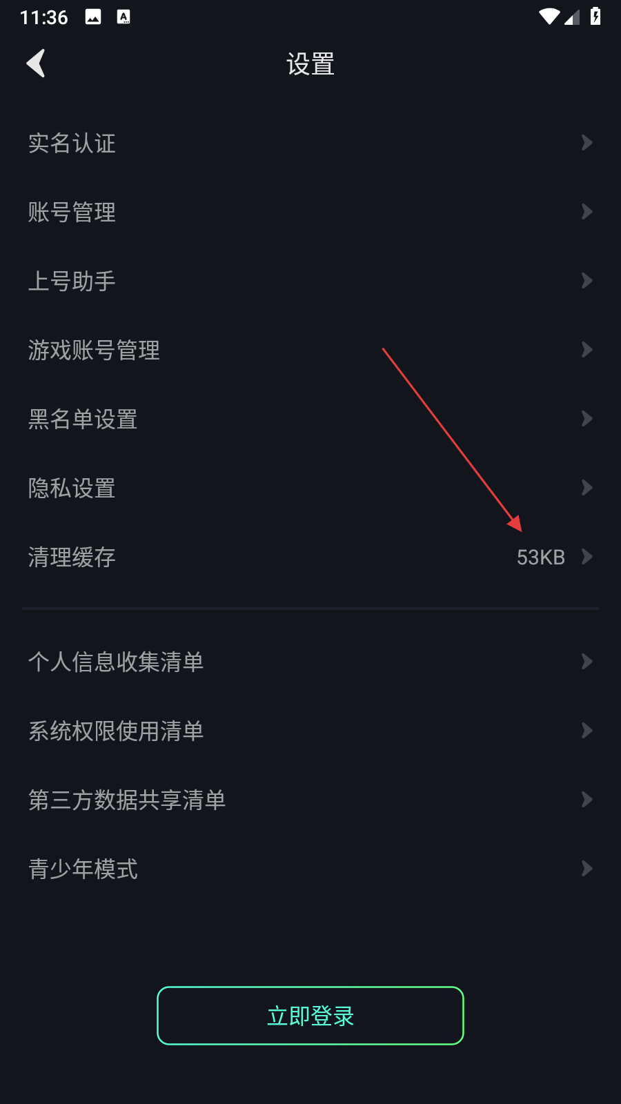 2、在設(shè)置頁(yè)面中找到清理緩存選項(xiàng),點(diǎn)擊該選項(xiàng)。