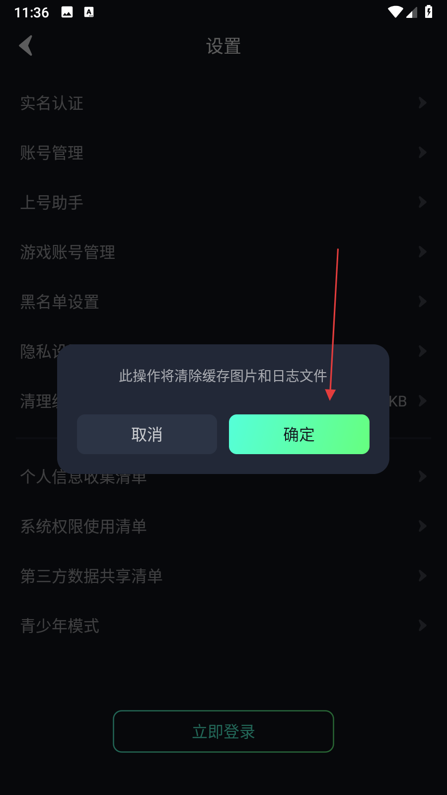 3、彈出此操作將清除緩存圖片和日志文件的提示框,在提示框中點(diǎn)擊確定按鈕,即可完成緩存清理。