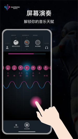 1、【屏幕演奏】手指輕點屏幕,控制每一個音符的節(jié)奏和音長,即可享受極簡演奏的樂趣;