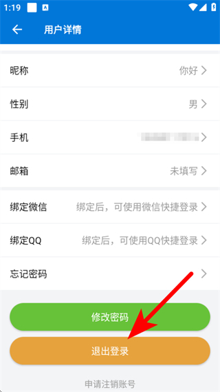3、在用戶的詳情頁,我們需要點(diǎn)擊退出登錄的按鈕。