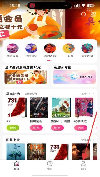 1、啟動中國電影app,在首頁內(nèi)點擊右下角我的圖標(biāo)。