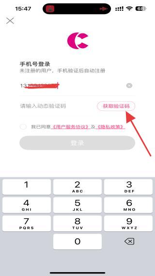 3、在手機號登錄的界面內(nèi),輸入手機號并點擊獲取驗證碼。