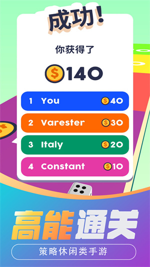 1、獲得的名次越高,能得到的金幣就會(huì)越多,有著超多的關(guān)卡供玩家挑戰(zhàn);