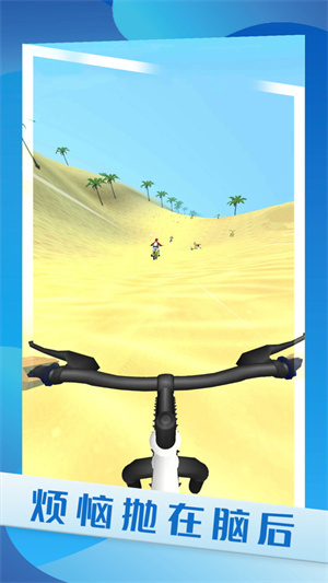 1、駕駛自行車在不同的場景中進(jìn)行競速,第一人稱視角更顯真實(shí)的感受;