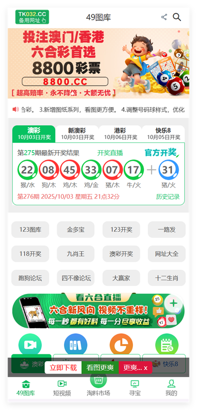 5、各種各樣的彩種都有傳統(tǒng)玩法全覆蓋,不用出門直接選號是福利彩票的大贏家,100%確保大家中獎提供大量優(yōu)惠,具備高額獎金預算各種熱門彩種全覆蓋。49圖庫港澳臺版本下載-49圖庫港澳臺版本免費下載安卓版