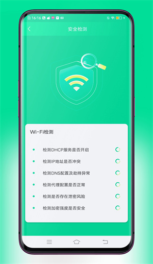 - 安全檢測(cè)當(dāng)前網(wǎng)絡(luò),避免WiFi病毒、木馬等入侵,大家可以更安全的上手沖浪,方向連接WiFi使用;