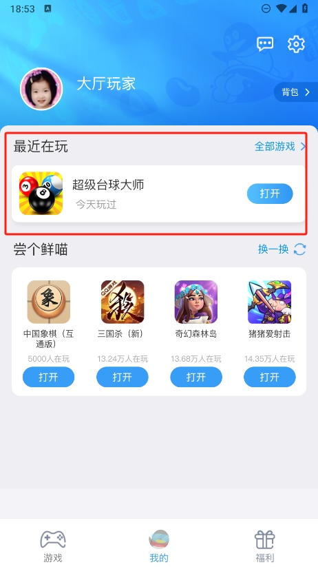 4、要想突出游戲全屏可以直接通過返回回到手機(jī)的頁面中,并且還能再這里找尋到歷史的游玩記錄。