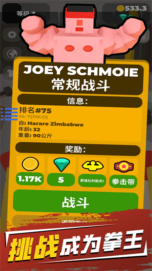1、學(xué)習(xí)全新的技能來進行使用,將自己的拳擊手升級到最高的等級來戰(zhàn)斗;