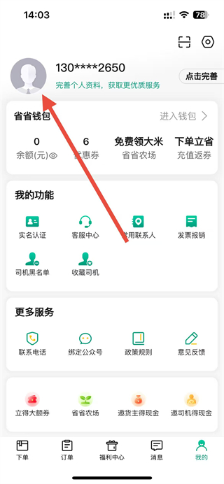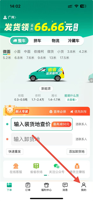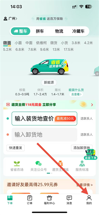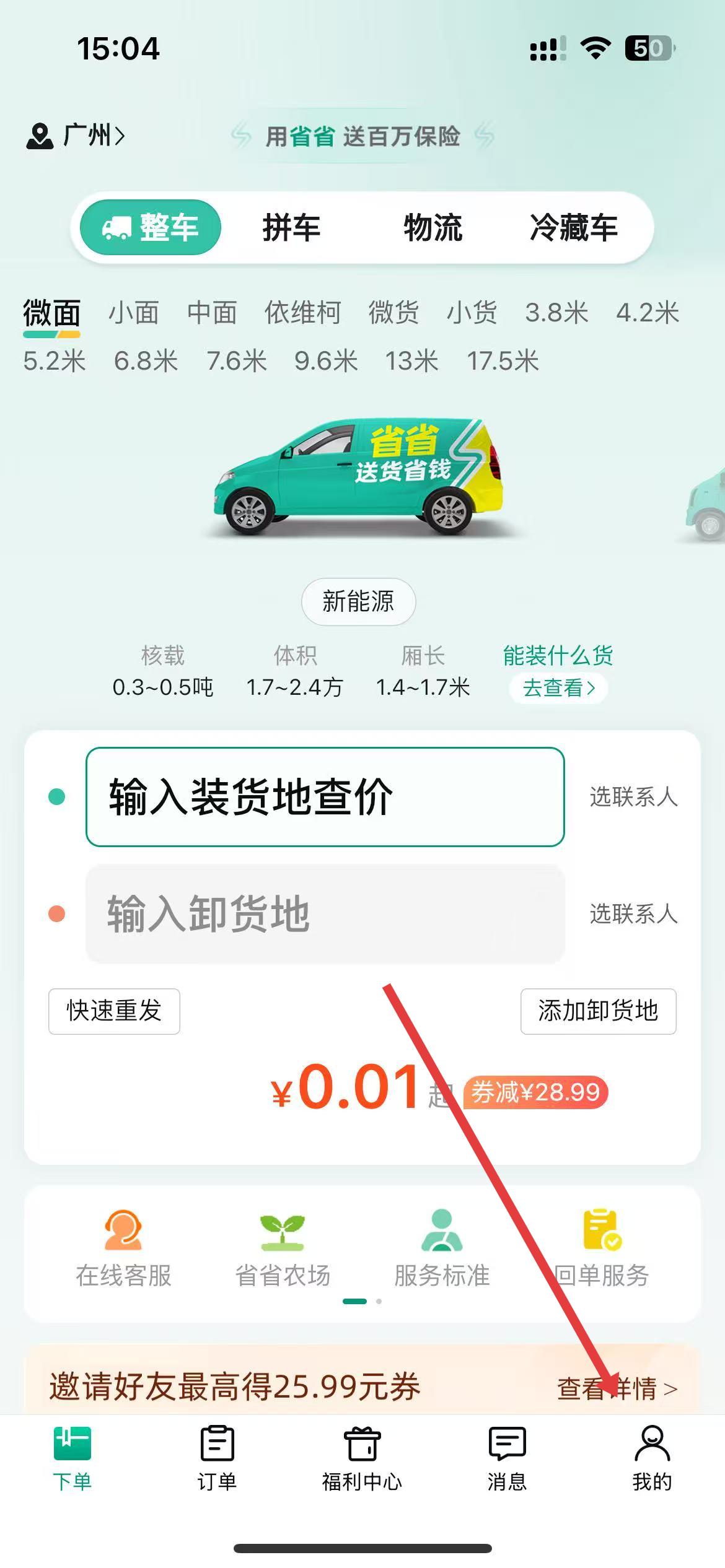 1、在省省回頭車首頁,點擊右下角我的進入個人頁面。