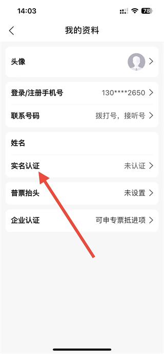 3、在我的資料頁面,點擊實名認證選項進入認證流程。