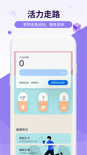 活力走路是一款運(yùn)動(dòng)記錄軟件,可以精準(zhǔn)記錄你的運(yùn)動(dòng)數(shù)據(jù)信息,每天在線實(shí)時(shí)記錄信息,讓大家可輕松查看自己的跑步、走路等運(yùn)動(dòng)數(shù)據(jù),每天在線設(shè)置目標(biāo)步數(shù),向著你設(shè)置的目標(biāo)步數(shù)達(dá)成完成,每日?qǐng)?jiān)持打卡養(yǎng)成運(yùn)動(dòng)習(xí)慣。