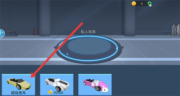 1、點擊開始游戲按鈕,進(jìn)入私人車庫界面。
