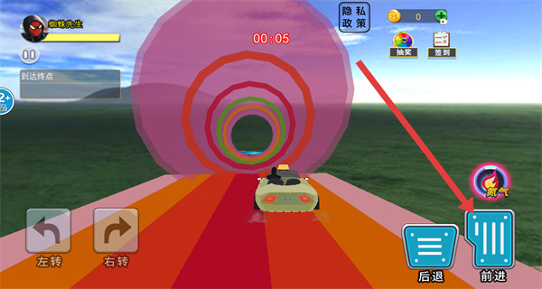 4、通過右下角的前進(jìn)按鈕控制車輛前進(jìn),利用左轉(zhuǎn)右轉(zhuǎn)按鈕調(diào)整方向,朝著終點前進(jìn),完成賽道挑戰(zhàn)。