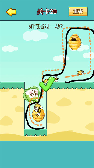 通過畫線將菜狗好好的保護起來,讓它不在被蜜蜂叮成腫狗頭,這樣就可以完成;