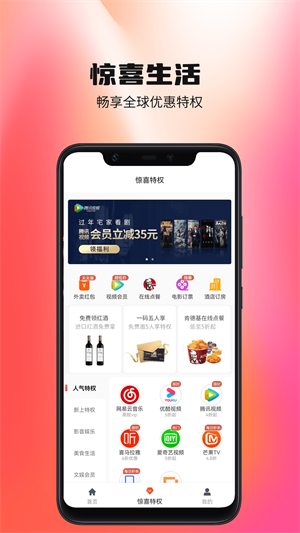 驚喜生活讓用戶可以非常簡單的就能買到各種好物,線上的購物方式是非常簡單的,所有用戶都可以足不出戶的享受在線網(wǎng)購的樂趣,還可以直接的把各種商品地為您直接送到家,還有很多的優(yōu)惠福利都是可以直接的在線免費領(lǐng)取和使用。