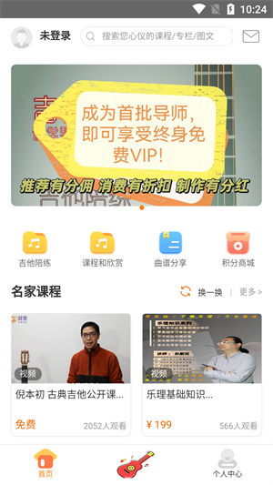 4、導(dǎo)師合作 申請成為導(dǎo)師,成為教學(xué)達(dá)人,一起建設(shè)完美吉他社區(qū)。