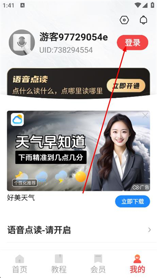 2、在我的頁(yè)面,找到并點(diǎn)擊登錄按鈕,進(jìn)入登錄頁(yè)面。