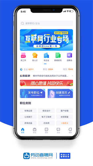 勞動直聘網(wǎng)里面的工作信息是非常多的,用戶可以根據(jù)自己的需求在線搜索各種職位關(guān)鍵詞,查找起來也是非常的方便,用戶還可以直接的在線選擇各種職位的類型,這樣為用戶推薦的也都是非常符合喜好的職位,還可以及時的了解各種最新的公告。