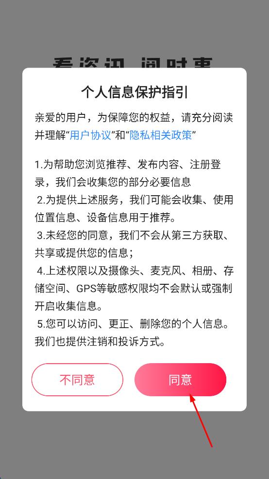 1、打開江門邑網(wǎng)通,在彈出的隱私政策界面,找到“同意”按鈕,點擊該按鈕。