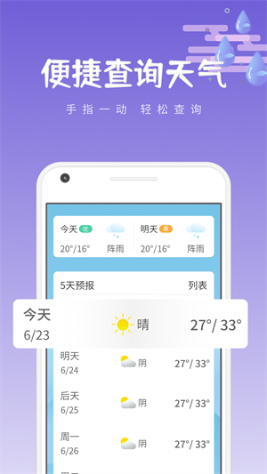 緒風氣候預報為用戶的日常生活和出行都帶來了很多的方便,讓所有的用戶都能輕松的查看各種天氣,也可以了解每天的空氣情況,這款軟件的頁面設計是非常簡單的,使用軟件查看各種天氣信息也一目了然,還有查詢?nèi)諝v的功能為用戶提供。