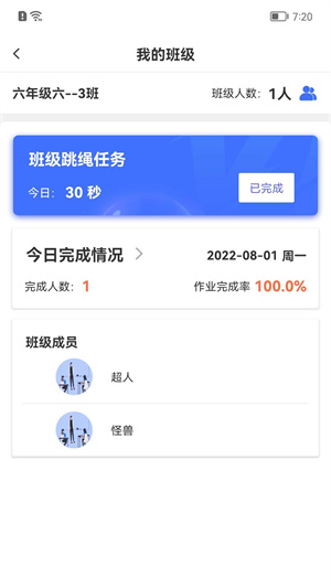 3、用戶可以在線輕松的完成班級(jí)跳繩任務(wù),還可以查看考試情況。