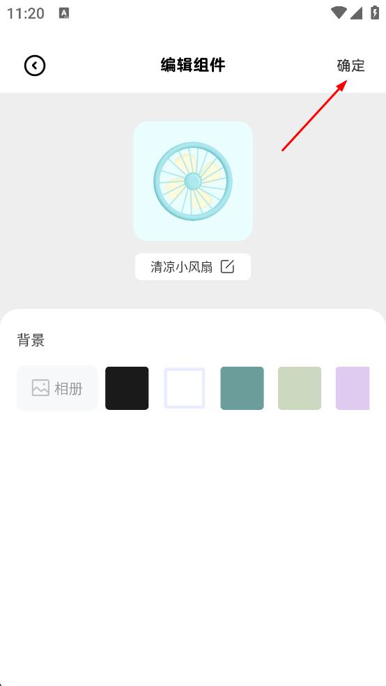 3、進入組件編輯界面后,可根據(jù)需要選擇背景顏色等設(shè)置,設(shè)置完成后,點擊右上角“確定”按鈕,將該組件添加到桌面。