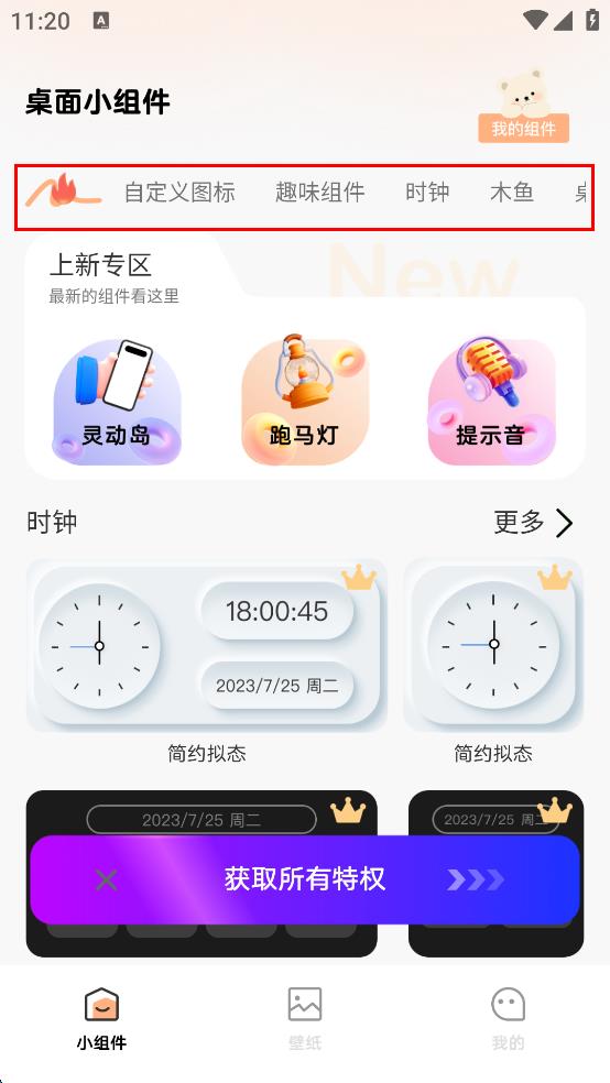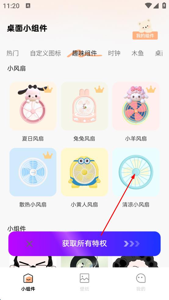 1、打開桌面小組件軟件,進入主界面后,在上方的分類欄中,點擊“趣味組件”選項,切換到趣味組件展示頁面。