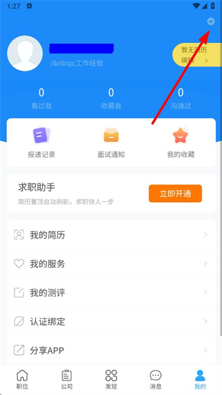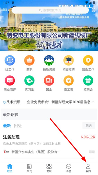 1、在新疆人才網(wǎng)app職位頁面點(diǎn)擊我的選項(xiàng),進(jìn)入個(gè)人頁面。